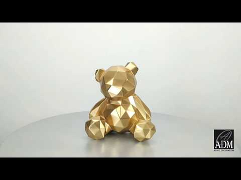 Entdecken Sie die außergewöhnliche Schönheit des facettierten goldfarbenen Teddybären, einer einzigartigen Kunstharzskulptur, die jedem Raum einen beeindruckenden Akzent verleiht. Dieses exklusive Kunstwerk vereint stilvolle Eleganz mit einer modernen Ästhetik, die sowohl zu zeitgenössischen als auch zu klassischen Einrichtungsstilen perfekt passt.