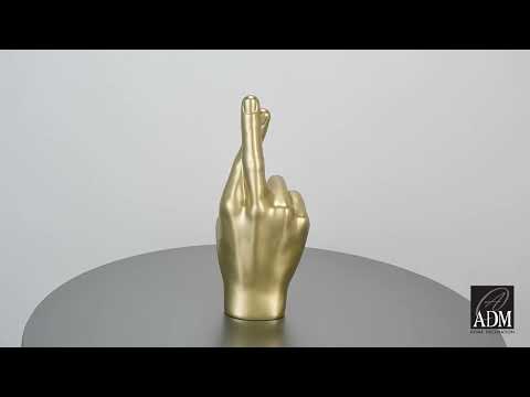 Verleihen Sie Ihrem Wohnraum einen Hauch zeitgenössischer Eleganz mit der Gekreuzte Finger Skulptur in Gold. Diese mehr als nur dekorative figurative Skulptur symbolisiert Hoffnung, Stil und positive Ausstrahlung. Sie ist ein perfektes Kunstwerk, das sowohl in modernen als auch in klassischen Interiors einen bemerkenswerten Eindruck hinterlässt.