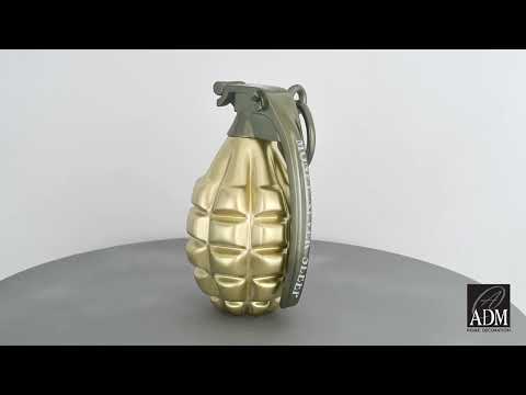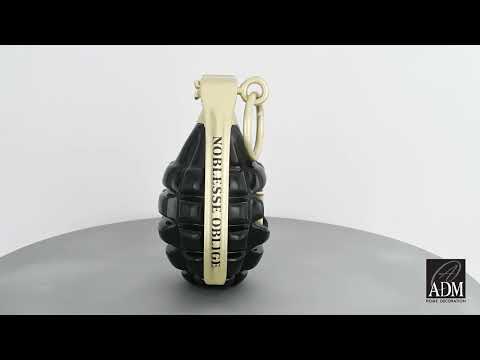Erleben Sie die Welt der Pop Art mit der Skulptur Noblesse Oblige, die in Form einer schwarzen Handgranate gestaltet ist und ein Symbol für höchste Ansprüche an Eleganz darstellt.