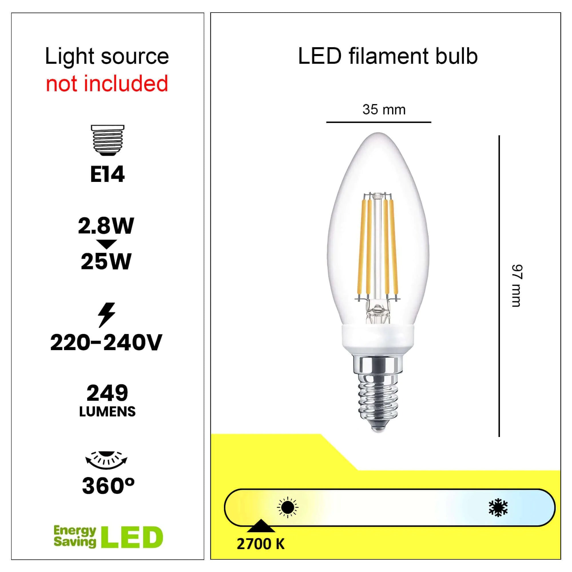 Die technischen Eigenschaften umfassen Abmessungen von 15 x 15 x 15 cm, ein Gewicht von 1,2 kg, und sie besteht aus hochwertigem Glas in einem transparenten Finish. Für die Beleuchtung benötigen Sie eine E14 Glühbirne (max. 25W), die nicht enthalten ist. Die Lampe verfügt über einen praktischen zweipoligen Stecker und ein 150 cm langes schwarzes Kabel mit einem Schalter am Verbindungskabel.
